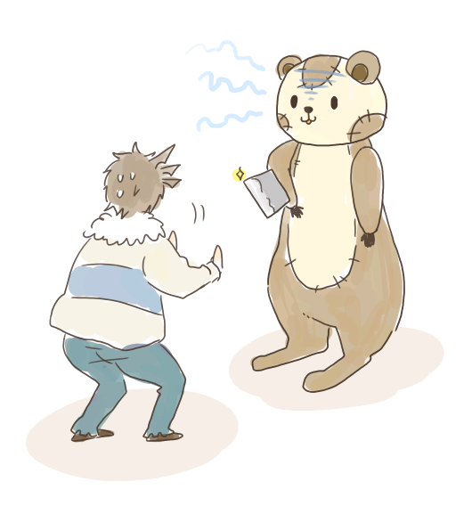 ソウ君のエンチャンター時代にお客さんにもっと可愛いゴーレムにしてよ!とかいちゃもんつけられて可愛いゴーレムつくってるギリコとか、小動物可愛がってるギリコとか。